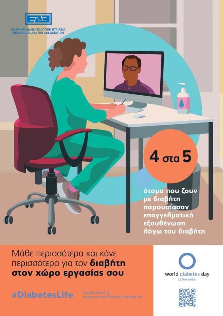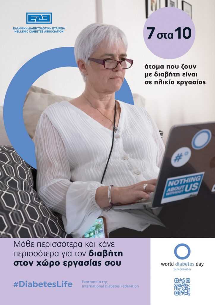 Φέτος, η Παγκόσμια Ημέρα Διαβήτη εστιάζει στο θέμα Διαβήτης και ευεξία στο περιβάλλον εργασίας και έχει στόχο να ευαισθητοποιήσει το ευρύ κοινό, τους εργαζομένους και τους εργοδότες για τη δημιουργία εκείνων των συνθηκών στο εργασιακό περιβάλλον, όπου τα άτομα που ζουν με διαβήτη θα αισθάνονται ότι είναι ασφαλή και θα ενθαρρύνονται να προοδεύσουν – χωρίς να διακυβεύεται η υγεία ή οι φιλοδοξίες τους.