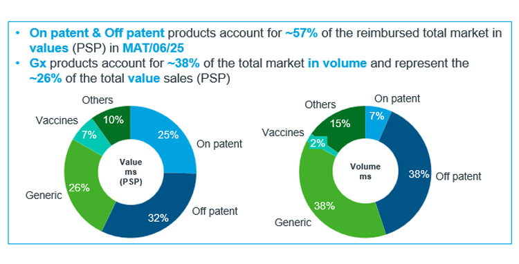 Τα γενόσημα αντιπροσωπεύουν το ~38% της συνολικής αγοράς σε όγκο και αντιπροσωπεύουν το ~26% των συνολικών πωλήσεων αξίας (PSP).