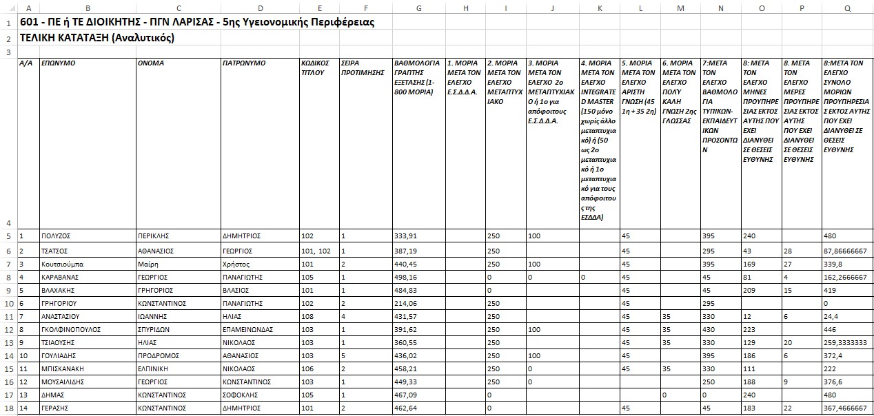 Ενδεικτικά δείτε τους επιλέξιμους για το Πανεπιστημιακό Γενικό Νοσοκομείο Λάρισας: