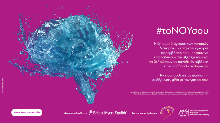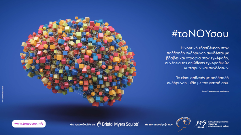 Με αφορμή την επικείμενη Παγκόσμια Ημέρα Πολλαπλής Σκλήρυνσης (30 Μαΐου), η Bristol Myers Squibb, Ελλάδας (BMS) ενεργοποιεί τη νέα εκστρατεία ενημέρωσης ‘#τοΝΟΥσου’, ως μια παρότρυνση προς το ευρύ κοινό, τους ασθενείς με πολλαπλή σκλήρυνση αλλά και τους οικείους τους να ενημερωθούν, να αναγνωρίσουν πιθανά συμπτώματα και να αναζητήσουν, έγκαιρα, τη συμβουλή ενός εξειδικευμένου νευρολόγου, για την ορθή ιατρική αξιολόγηση και παρέμβαση.