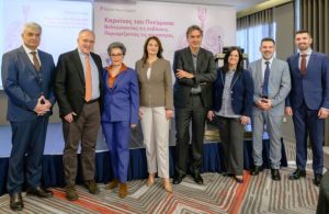Από αριστερά προς τα δεξιά: 1. κ. Κωνσταντίνος Συρίγος, Καθηγητής Παθολογίας – Ογκολογίας Ιατρικής Σχολής ΕΚΠΑ, Διευθυντής, Γ’ Παθολογική Κλινική & Ομώνυμο Εργαστήριο Ιατρικής Σχολής ΕΚΠΑ 2. κ. Ηλίας Αθανασιάδης, Ογκολόγος – Παθολόγος, Διευθυντής Ογκολογικής Κλινικής «ΜΗΤΕΡΑ», Visiting Assistant Professor Oncology, Northwestern University, ΗΠΑ 3. κα Ανδριανή Χαρπίδου, Πνευμονολόγος, Υπεύθυνη Τμήματος Κλινικών Μελετών, Γ’ Παθολογική Κλινική & Ομώνυμο Εργαστήριο Ιατρικής Σχολής ΕΚΠΑ, Γ.Ν.Ν.Θ.Α «Σωτηρία» 4. κα Ελισάβετ Προδρόμου, Γενική Διευθύντρια, Bristol Myers Squibb Ελλάδας 5. κ. Ιωάννης Μπουκοβίνας, MD, PhD, PharmaD, Παθολόγος – Ογκολόγος, Επιστημονικός Υπεύθυνος Ογκολογικού Τμήματος Βιοκλινικής, Θεσσαλονίκη 6. κα Ελένη Δημητρίου, Business Unit Director, Oncology Bristol Myers Squibb Ελλάδος 7. κ. Γιώργος Καπετανάκης, Πρόεδρος Ελληνικής Ομοσπονδίας Καρκίνου (ΕΛΛ.Ο.Κ.) 8. κ. Γιώργος Τσιακαλάκης, Market Access & External Affairs Lead, Bristol Myers Squibb Ελλάδας