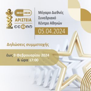 Η διαδικασία υποβολής συμμετοχών στον κορυφαίο θεσμό των Αριστείων Ε.Ε.Φα.Μ. έχει ξεκινήσει και η Ελληνική Εταιρεία Φαρμακευτικού Management προσκαλεί τις επιχειρήσεις της φαρμακευτικής αγοράς να συμμετάσχουν στον θεσμό για την ανάδειξη και αναγνώριση των πιο καινοτόμων και αξιόλογων προγραμμάτων επικοινωνίας του κλάδου.