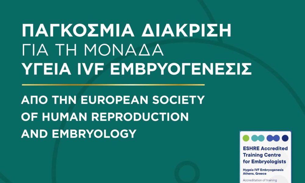 Η European Society of Human Reproduction and Embryology (ESHRE), ο κορυφαίος ευρωπαϊκός οργανισμός στον τομέα της αναπαραγωγικής ιατρικής, απένειμε στη Μονάδα ΥΓΕΙΑ IVF Εμβρυογένεσις την πρώτη παγκόσμια πιστοποίηση Κέντρου Εκπαίδευσης στην Κλινική Εμβρυολογία. Η διάκριση αυτή συνοδεύεται από αναγνώριση και από το European Board & College of Obstetrics and Gynaecology (EBCOG), επιβεβαιώνοντας ότι η Μονάδα πληροί τα υψηλότερα ευρωπαϊκά πρότυπα κλινικής πρακτικής και εκπαίδευσης.