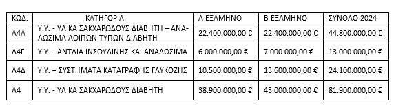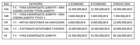 Η Ομοσπονδία περιγράφει ότι ο αρχικός προϋπολογισμός της κατηγορίας Λ4 του Διαβήτη, για το 2024, είχε ωςεξής: