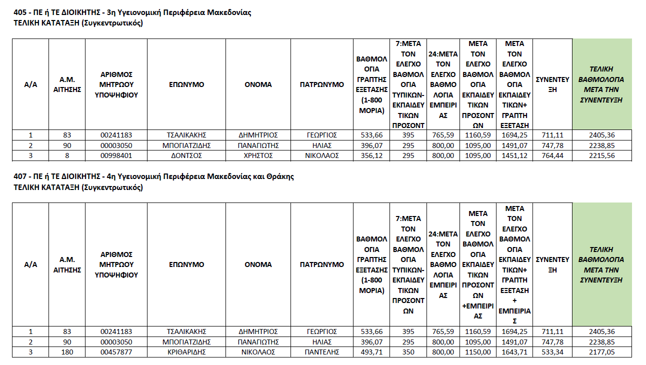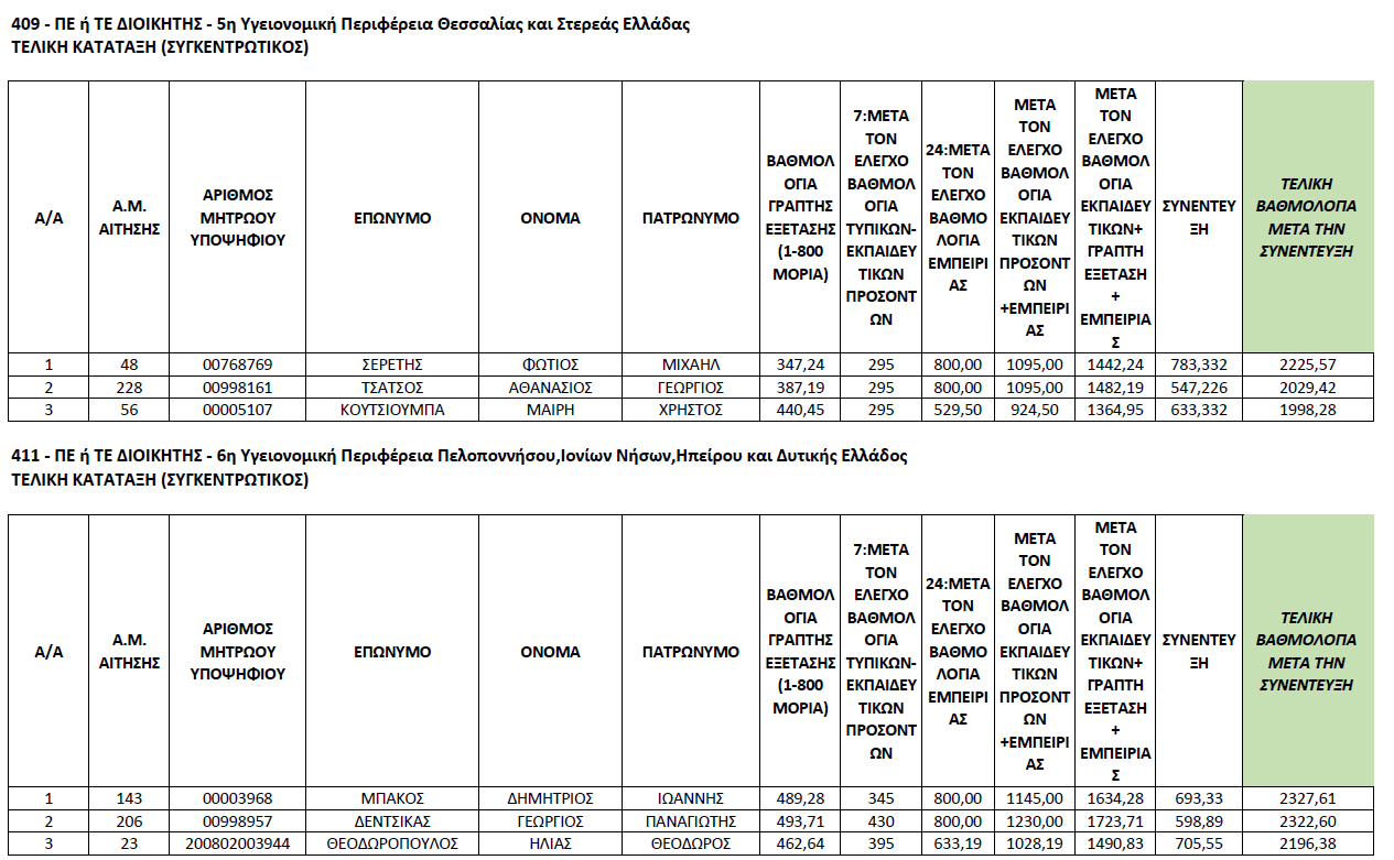 Δείτε παρακάτω τους πίνακες που δημοσιοποίησε το ΑΣΕΠ με την τελική τριάδα