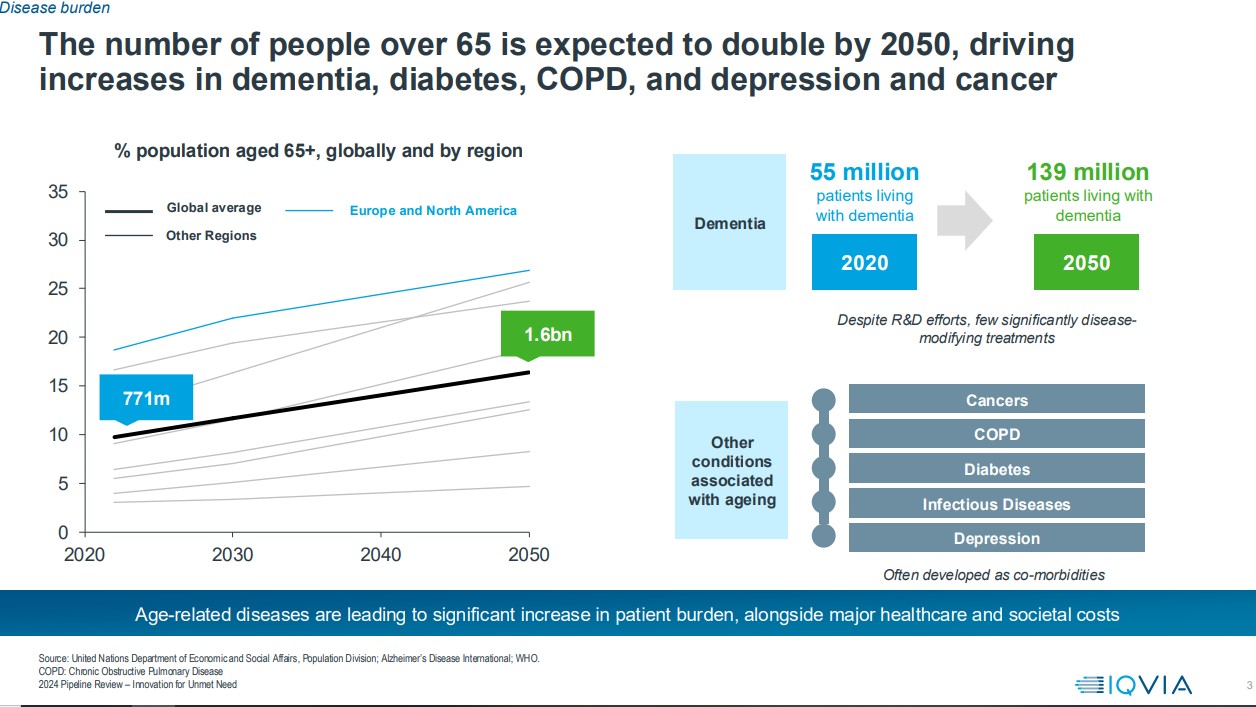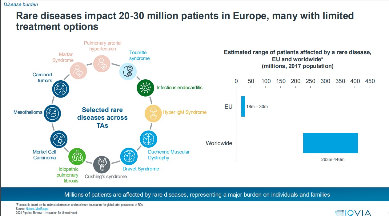 Καταστάσεις όπως είναι ο καρκίνος, οι καρδιαγγειακές παθήσεις, η άνοια και η ΧΑΠ βρίσκονται σε έξαρση. Η έκθεση εκτιμά ότι περίπου 20-30 εκατομμύρια Ευρωπαίοι πάσχουν από κάποια σπάνια ασθένεια, ενώ οι καταστάσεις ψυχικής υγείας, συμπεριλαμβανομένης της κατάθλιψης, παραμένουν βαθιές και πολύπλευρες. Οι ασθενείς που ζουν με αυτές τις παθήσεις χρειάζονται νέες θεραπείες.