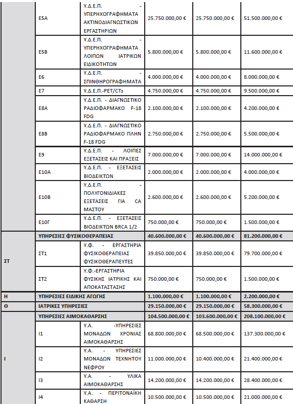 Το σύνολο του ποσού που θα διαθέσει ο ΕΟΠΥΥ για τις συγκεκριμένες υπηρεσίες αγγίζει το 1,633 δις ευρώ.