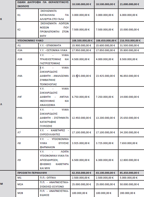 ΕΙΔΙΚΗ ΔΙΑΤΡΟΦΗ ΓΙΑ ΘΕΡΑΠΕΥΤΙΚΟΥΣ ΣΚΟΠΟΥΣ: 21.000.000,00εκατ. ευρώ