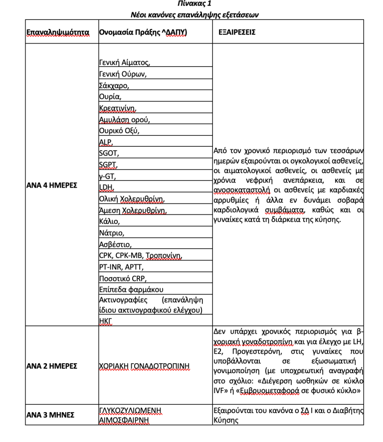 Το υπουργείο υγείας με τη νέα απόφασή του, βάζει πιο αυστηρούς κανόνες για την επανάληψη των εξετάσεων αφού ορίζει συγκεκριμένο διάστημα που ο ασφαλισμένος μπορεί να τις επαναλάβει.