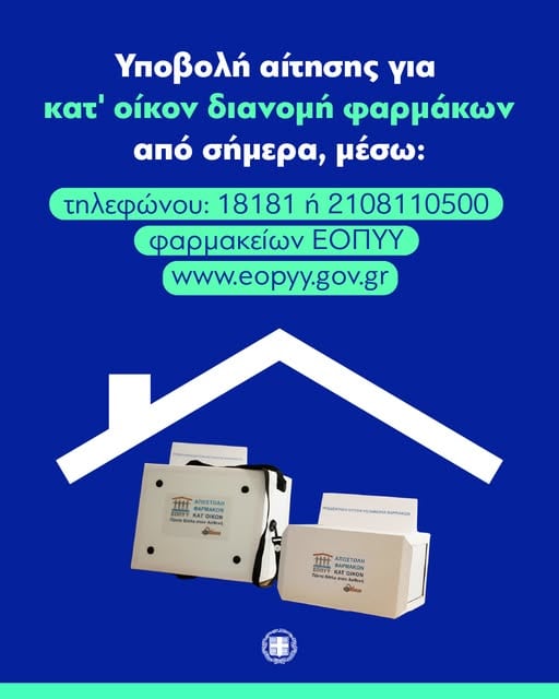 Ξεκινούν από σήμερα οι αιτήσεις στον ΕΟΠΥΥ για την αποστολή ακριβών φαρμάκων κατ’ οίκον.