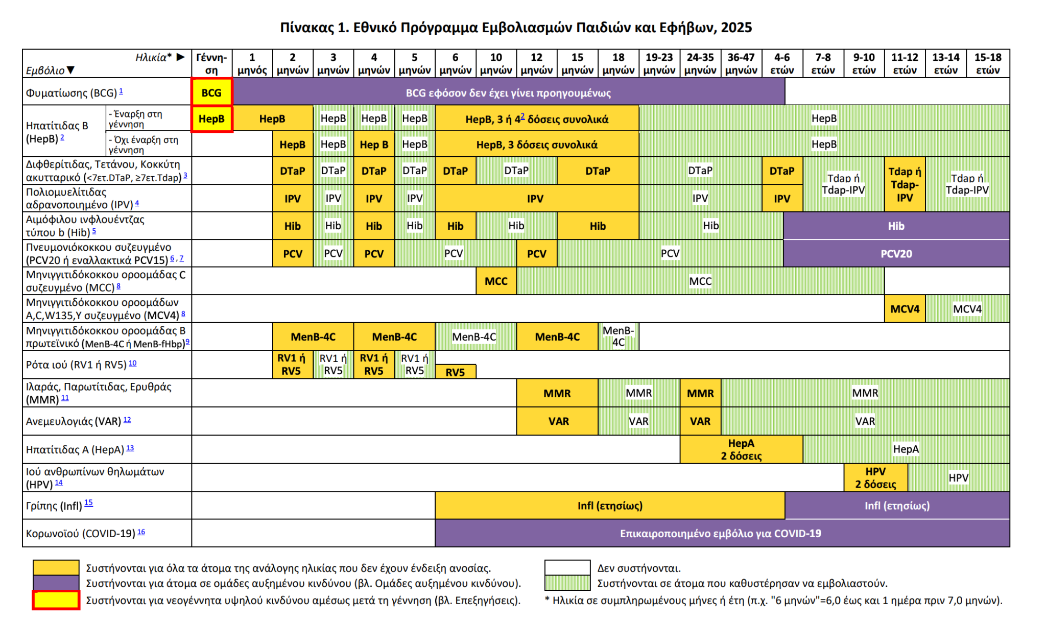 Δείτε ΕΔΩ αναλυτικά το Εθνικό Πρόγραμμα Εμβολιασμών Παιδιών και Εφήβων 2025