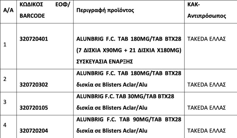 - 2025 (1.1.2025 – 31.12.2025): 1.595.800,00 €, για τις συνολικές ποσότητες των σκευασμάτων Αναστολέων της Κινάσης του Αναπλαστικού Λεμφώματος που διατίθενται στα φαρμακεία του Ε.Ο.Π.Υ.Υ.
