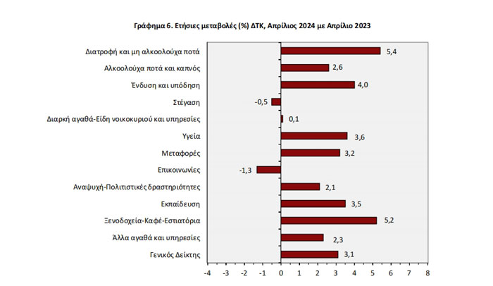 Η ΕΛΣΤΑΤ τον Μάρτιο του 2024 είχε καταγράψει ετήσια αύξηση των τιμών στην υγεία 4,4%, ενώ η μηνιαία μεταβολή (Μάρτιος 2024 με Φεβρουάριο 2024) ήταν στο +1,3%.