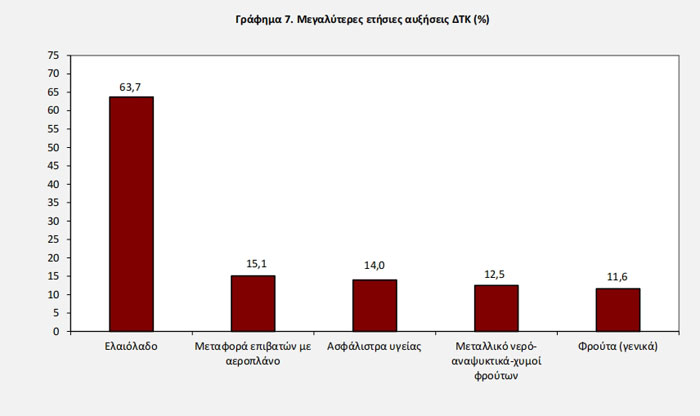Ωστόσο, σύμφωνα με τα στοιχεία που παρουσίασε η ΕΛΣΤΑΤ, οι τιμές στον κλάδο της Υγείας όπως επίσης οι ανατιμήσεις στην κατηγορία Διατροφή, τα αλκοολούχα ποτά, την εστίαση και την ένδυση – υπόδηση συνεχίζουν να τροφοδοτούν τις πληθωριστικές πιέσεις στην αγορά.