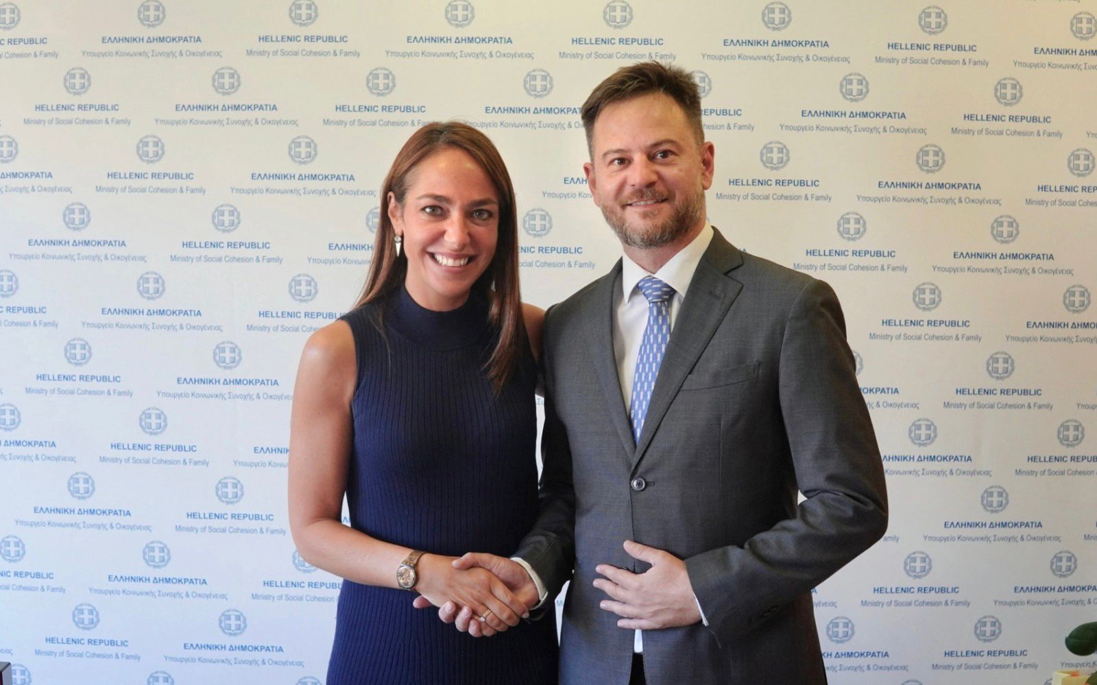 Τον νέο Γενικό Γραμματέα καλωσόρισαν στην ηγετική ομάδα του Υπουργείου η Υπουργός Κοινωνικής Συνοχής και Οικογένειας Δόμνα Μιχαηλίδου, η Υφυπουργός Έλενα Ράπτη, καθώς και οι Γενικοί Γραμματείς Δημογραφικής και Στεγαστικής Πολιτικής Κωνσταντίνος Γλούμης-Ατσαλάκης και Ισότητας και Ανθρωπίνων Δικαιωμάτων Κατερίνα Πατσογιάννη.