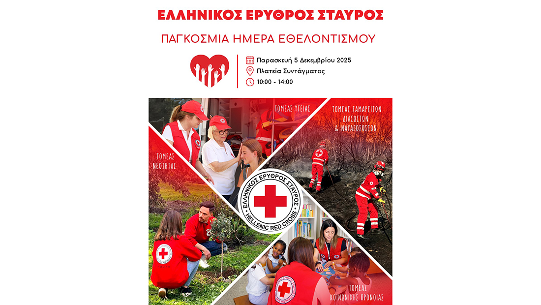 Ο Ελληνικός Ερυθρός Σταυρός τιμά την Παγκόσμια Ημέρα Εθελοντισμού διοργανώνοντας μεγάλη εορταστική εκδήλωση στην Πλατεία Συντάγματος την Παρασκευή 5 Δεκεμβρίου 2025 και ώρες 10:00 – 14:00, με κεντρικό θέμα: «Γίνε εθελοντής του Ελληνικού Ερυθρού Σταυρού». Στην ξεχωριστή εκδήλωση του ΕΕΣ θα συμμετάσχουν 370 μαθητές από σχολεία της Αττικής.