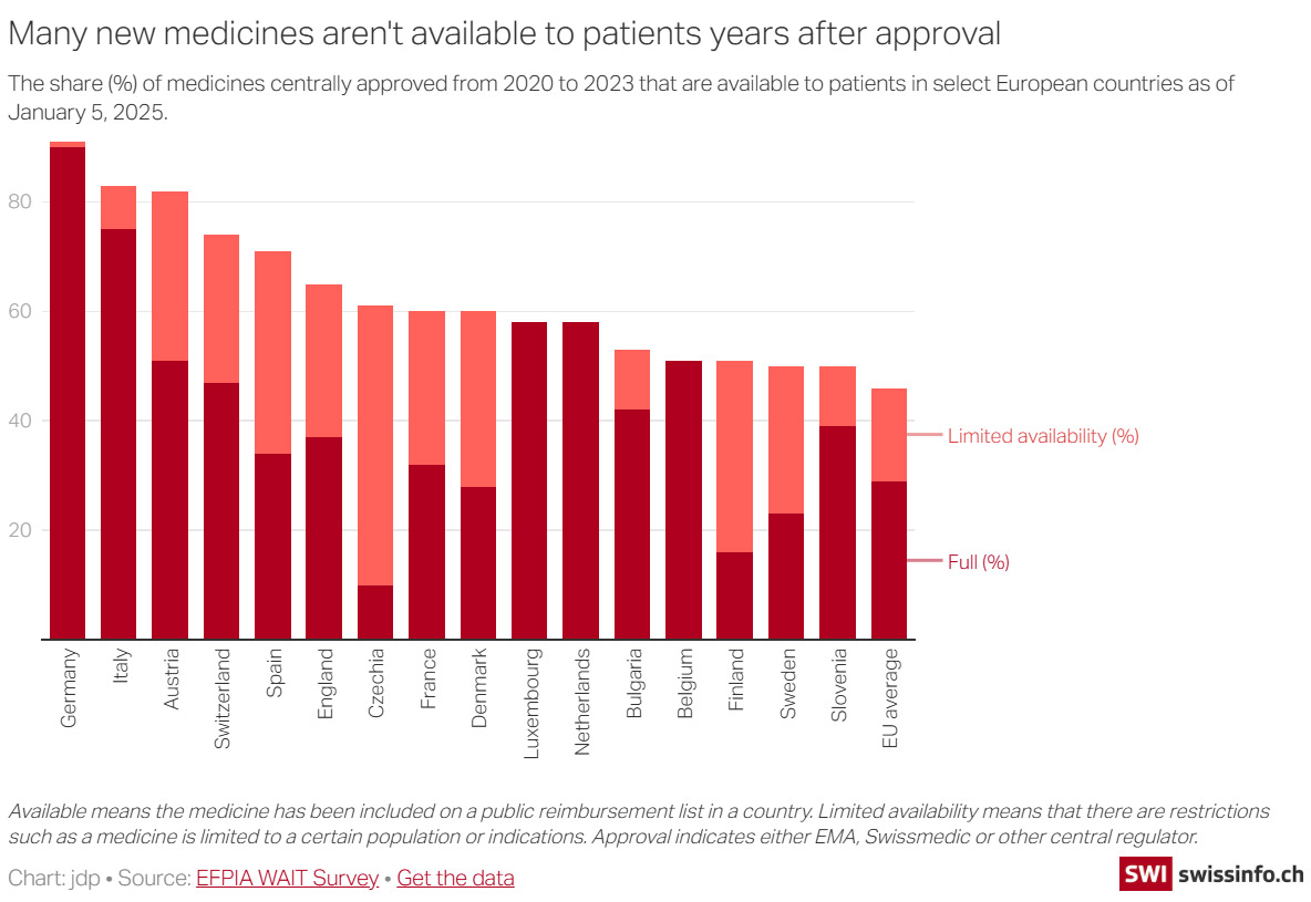 Ορισμένες φαρμακευτικές εταιρείες έχουν εγκαταλείψει τις αγορές ή δεν έχουν κυκλοφορήσει καθόλου φάρμακα λόγω διαφορών με τις εθνικές ρυθμιστικές αρχές σχετικά με την τιμολόγηση. Η αμερικανική εταιρεία βιοτεχνολογίας Bluebird Bio τερμάτισε τις εμπορικές της δραστηριότητες στην Ευρώπη το 2022, επικαλούμενη τα μεγάλα εμπόδια που αντιμετώπισε στο να πείσει τις ευρωπαϊκές χώρες να πληρώσουν για τις γονιδιακές θεραπείες της. Τον Ιούλιο, η Roche απέσυρε το αντικαρκινικό φάρμακό της Lunsumio από την ελβετική αγορά, αφού οι αρχές επέμειναν σε περισσότερα στοιχεία πριν συμφωνήσουν σε μια τελική τιμή.