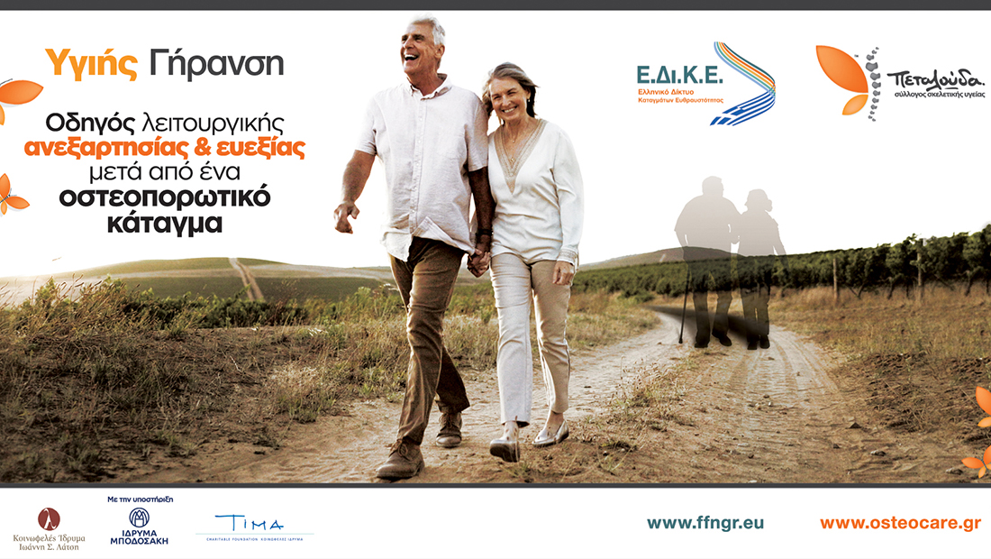Στο πλαίσιο του Προγράμματος Θεματικών Δωρεών για την Υγιή Γήρανση του Ιδρύματος Μποδοσάκη, που συγχρηματοδοτείται από το Ίδρυμα Μποδοσάκη, το Κοινωφελές Ίδρυμα Ιωάννη Σ. Λάτση και το ΤΙΜΑ Κοινωφελές Ίδρυμα, οι δύο φορείς, Σύλλογος Πεταλούδα και το Ελληνικό Δίκτυο Καταγμάτων Ευθραυστότητας (Ε.Δι.Κ.Ε) ήταν από τις συμπράξεις που επιλέχθηκαν για την υλοποίηση ενός ολοκληρωμένου προγράμματος γύρω από τη λειτουργική ανεξαρτησία και ευεξία μετά από ένα οστεοπορωτικό κάταγμα.