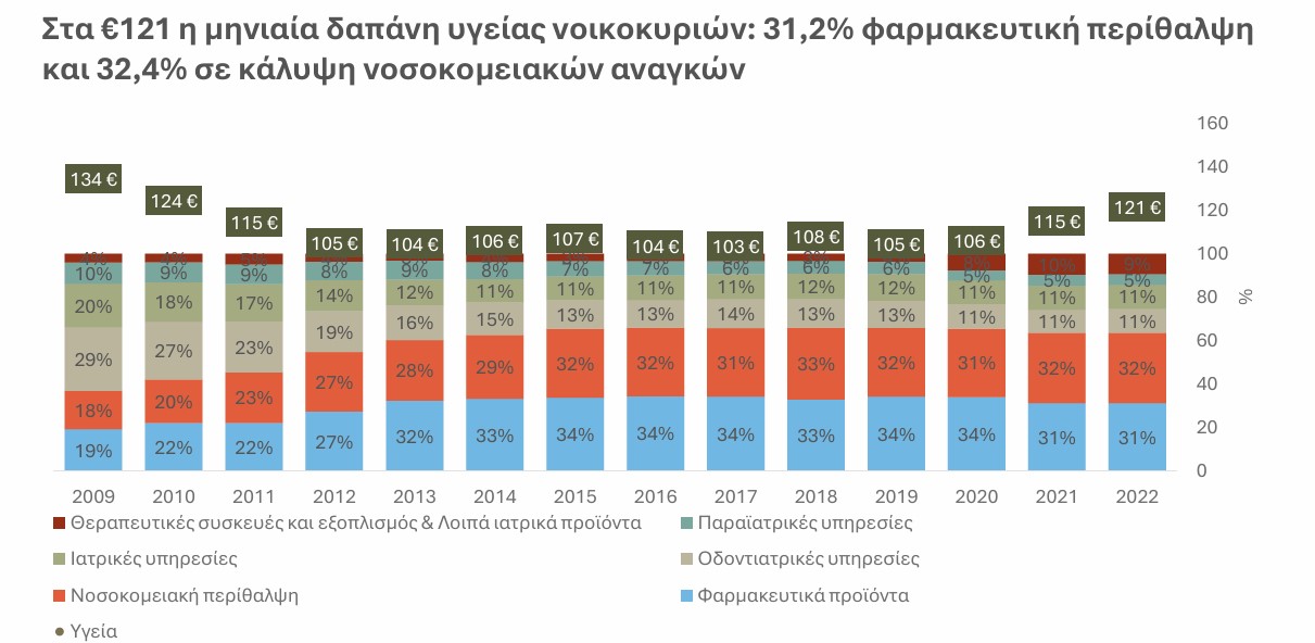 Τέλος, η συμμετοχή των ασθενών αυξήθηκε το 2022 στα 698 εκατ. ευρώ και στα 734 εκατ. ευρώ το 2023.
