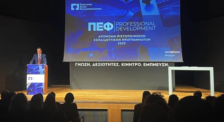 Συνολικά 58 απονομές πιστοποιήσεων πραγματοποιήθηκαν στην τελετή που διοργάνωσε η Πανελλήνια Ένωση Φαρμακοβιομηχανίας σε νέους μεταπτυχιακούς φοιτητές που συμμετείχαν στο εκπαιδευτικό πρόγραμμα «ΠΕΦ Professional Development», με γνωστικά αντικείμενα «Regulatory Affairs» και «Quality Assurance», παρουσία θεσμικών και εκπροσώπων της ελληνικής φαρμακευτικής αγοράς.
